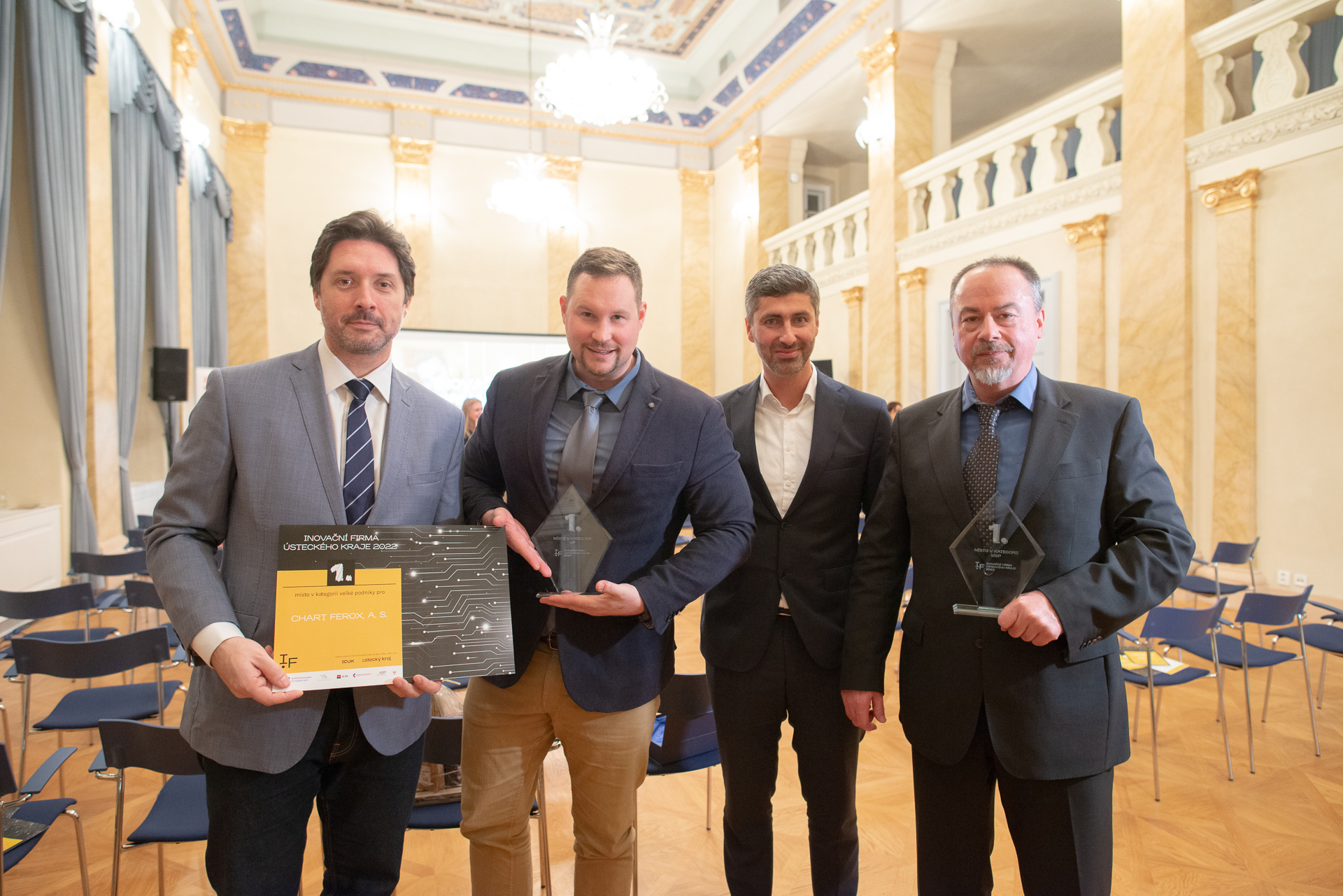 Vítězné firmy si odnesly šek v hodnotě 50 tisíc korun na jejich další inovace, skleněnou pamětní plaketu a také získaly možnost používat logo Inovační firma Ústeckého kraje za rok 2022.